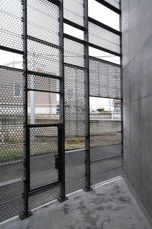 Стиль лофт активно используется в оформлении не только внутреннего пространства бывших заводов и фабрик, но и во внешней отделке зданий. Ограждение Лофт 8 отлично дополнит первый этаж здания, например, перед центральной входной группой. Визуально конструкция выглядит как полотно, составленное из нескольких полос разной ширины. Вертикальные стойки крепятся к полу и к потолку здания. Между ними в произвольном порядке зафиксированы сетки, отличающиеся друг от друга рисунком и размером. Ажурные сетки чередуются с классическими с круглыми отверстиями. В теплое время года ограждение стильно украсят ампельные виды растений – цветы с длинными вьющимися побегами, которые можно подвесить в горшках или кашпо на ограждение.